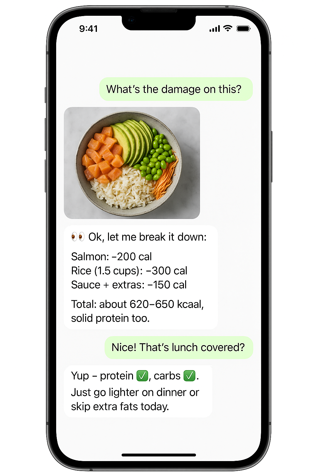 Snap a photo or describe your meal - Livi breaks it down in seconds with precise calorie counts, macro splits, and simple tweaks to keep you on track without the hassle of logging every bite.